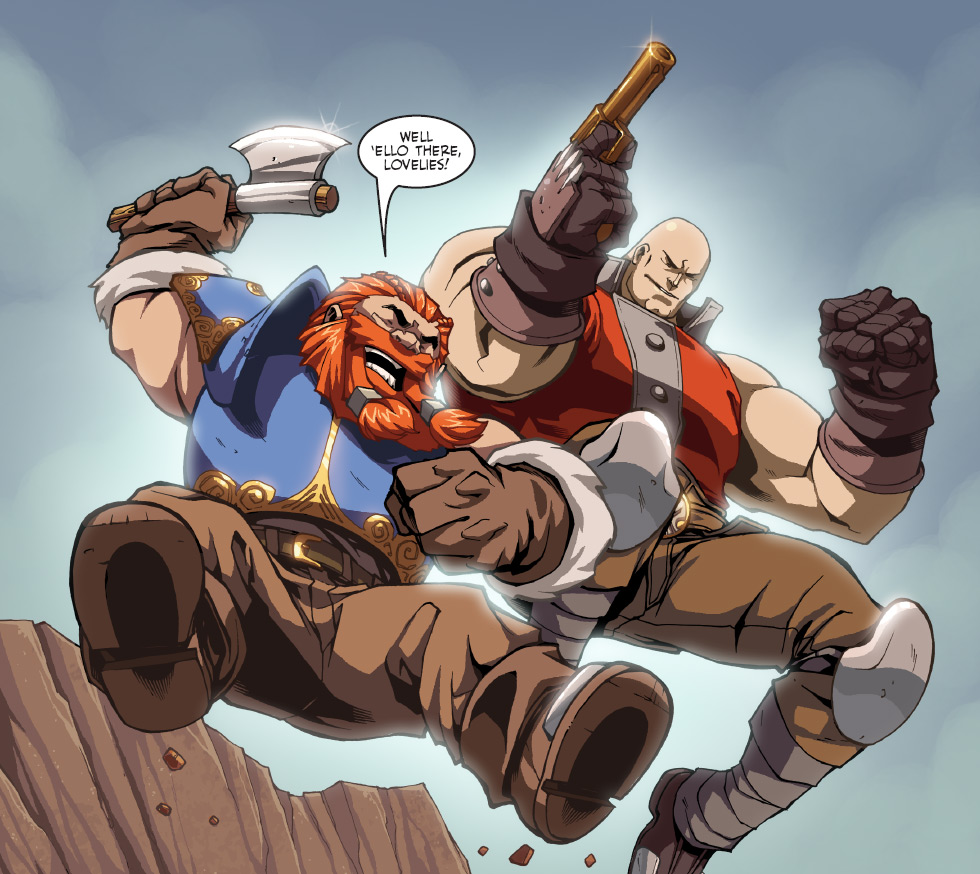 “Skullkickers…the way I always describe it is: it’s a buddy cop movie meets Conan the Barbarian,” Zub said of the series which recently reached its seventeenth issue. “It’s about two mercenary monster hunters who get themselves in big trouble and have to kill their way out. It’s really pulpy, it’s earthy and ridiculous, and really violent and sarcastic.”