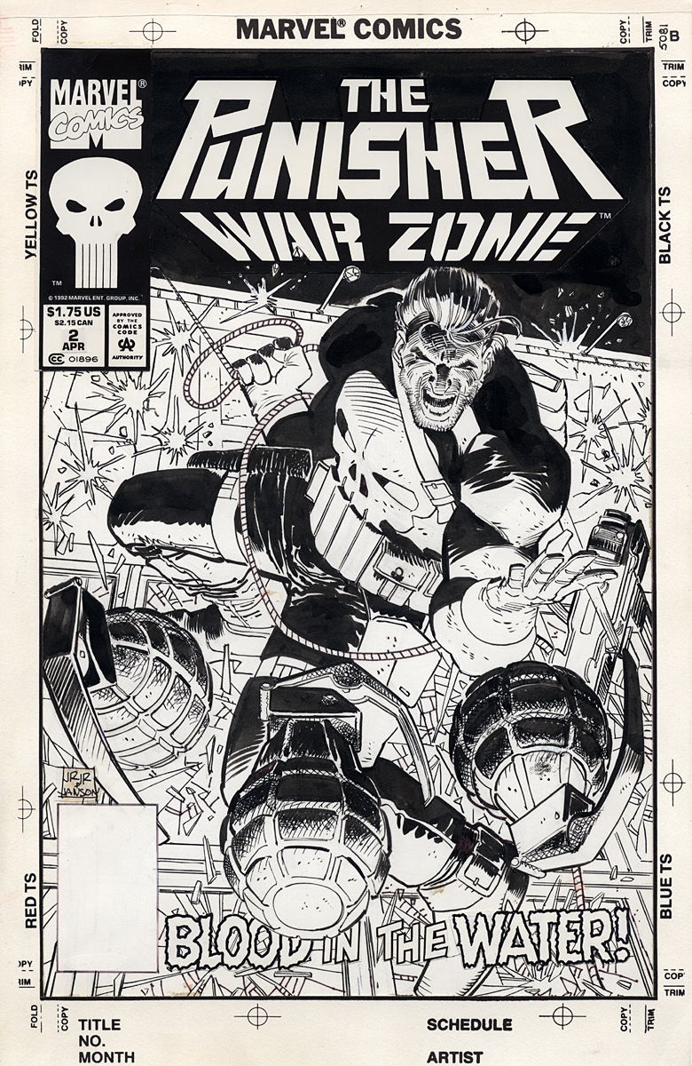 Punisher War Zone issue 2 cover by John Romita Jr and Klaus Janson. Source.