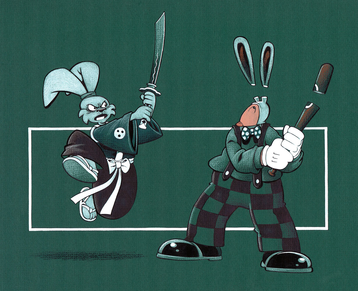 Usagi Yojimbo vs Fred the Clown by Roger Langridge. Source.