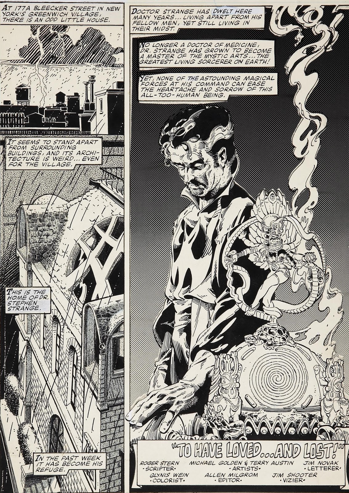 Doctor Strange issue 55 splash by Michael Golden. Source.