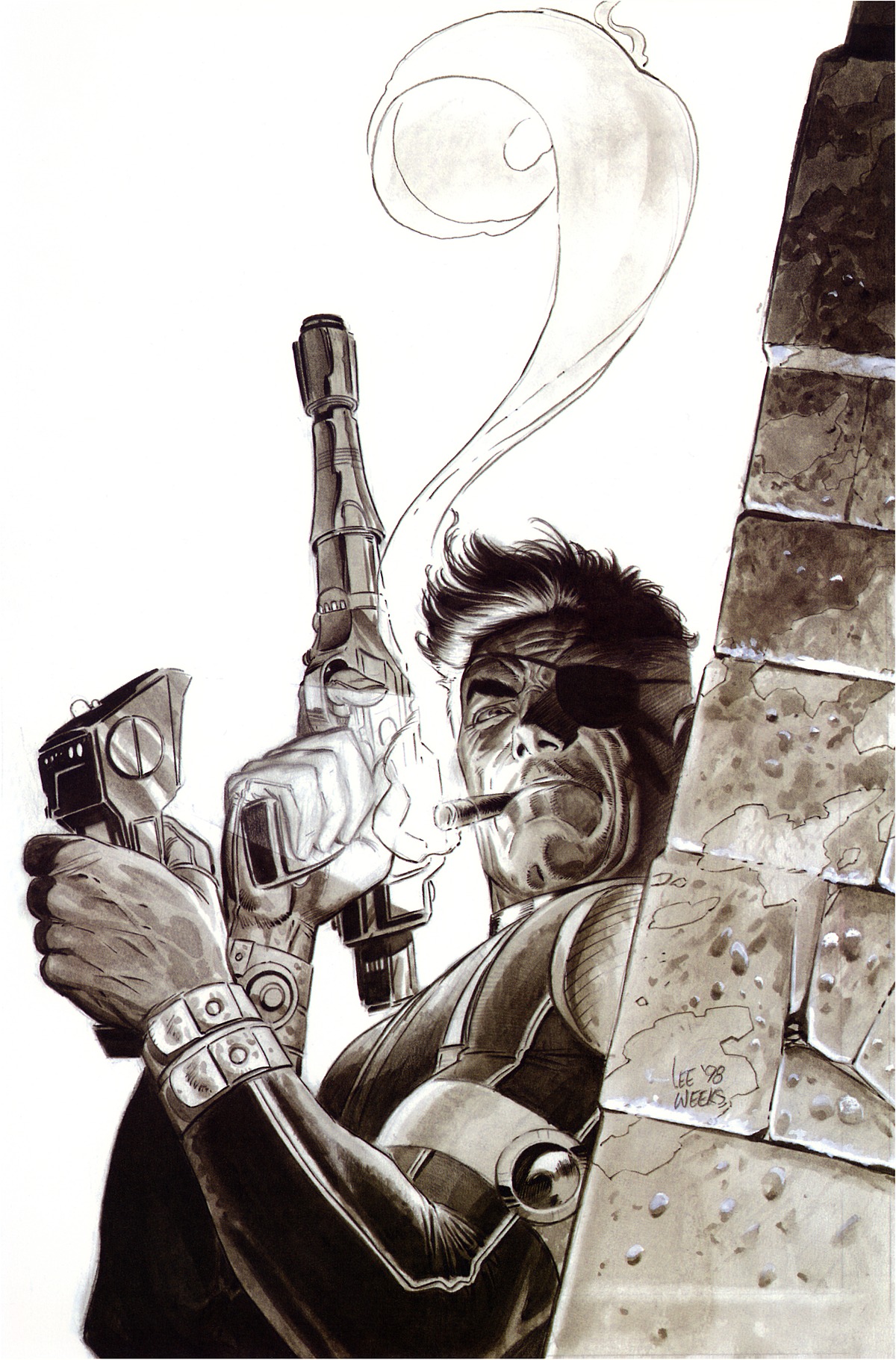 Nick Fury by Lee Weeks. Source.
