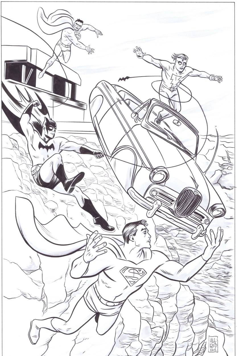 Superman, Batman, Madman and Bizarro by Mike Allred. Source.