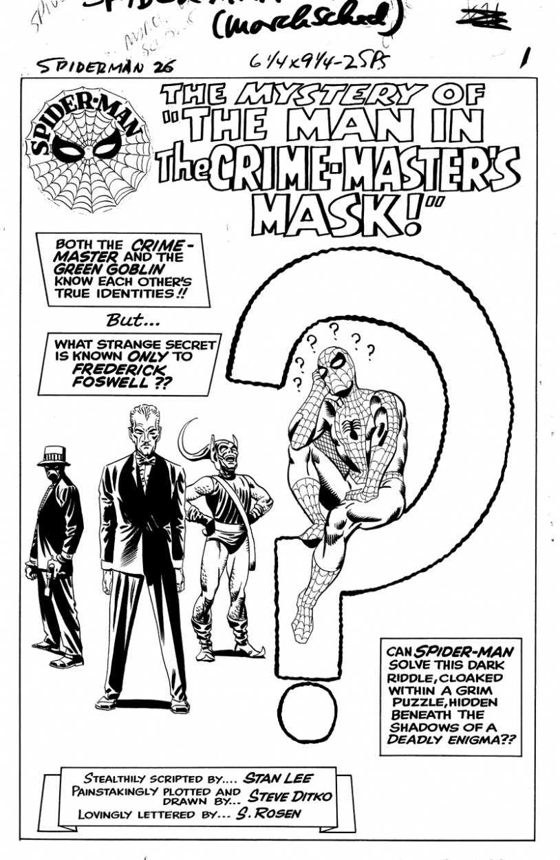 Amazing Spider-Man issue 26 splash by Steve Ditko. Source.