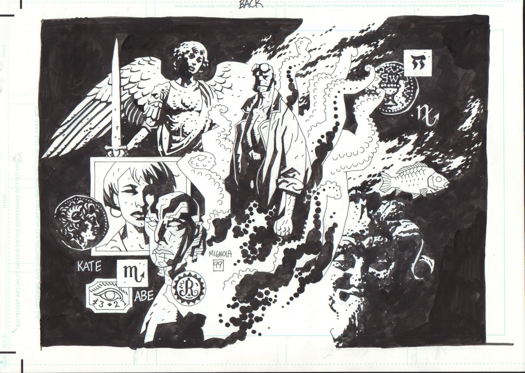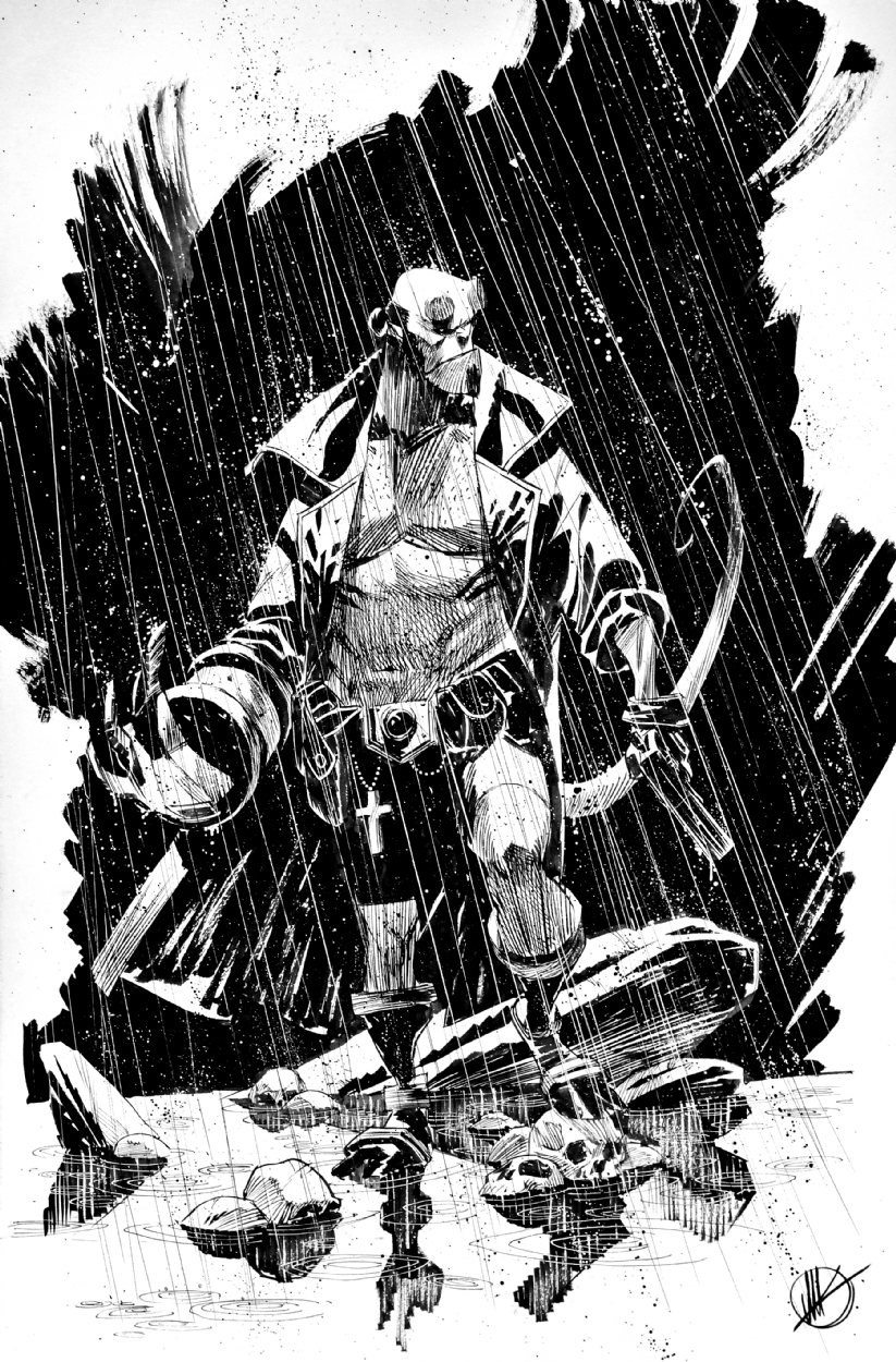Art of Hellboy cover by Mike Mignola. Source.