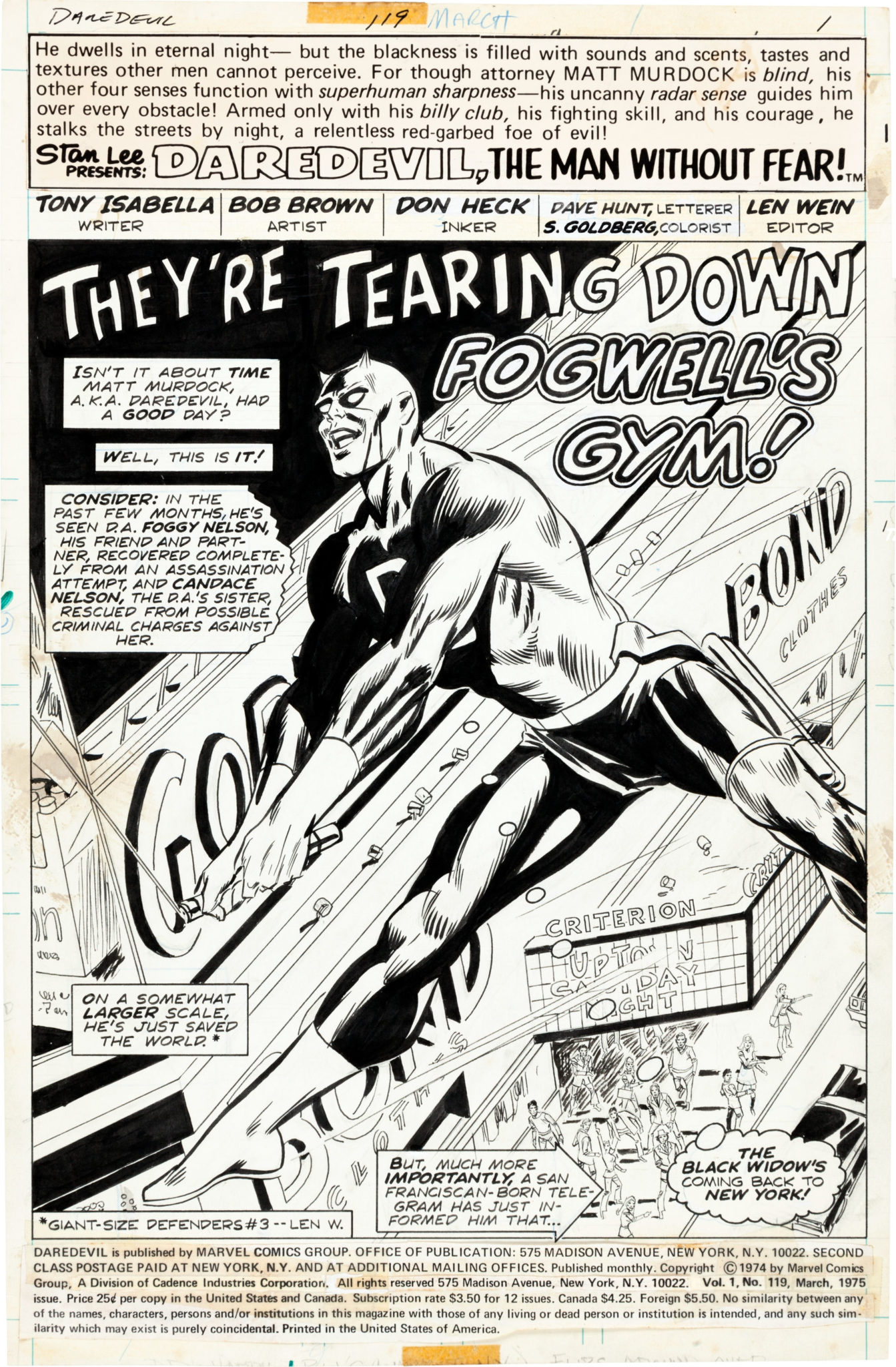 Daredevil #119 Splash Page by Bob Brown and Don Heck. Source.