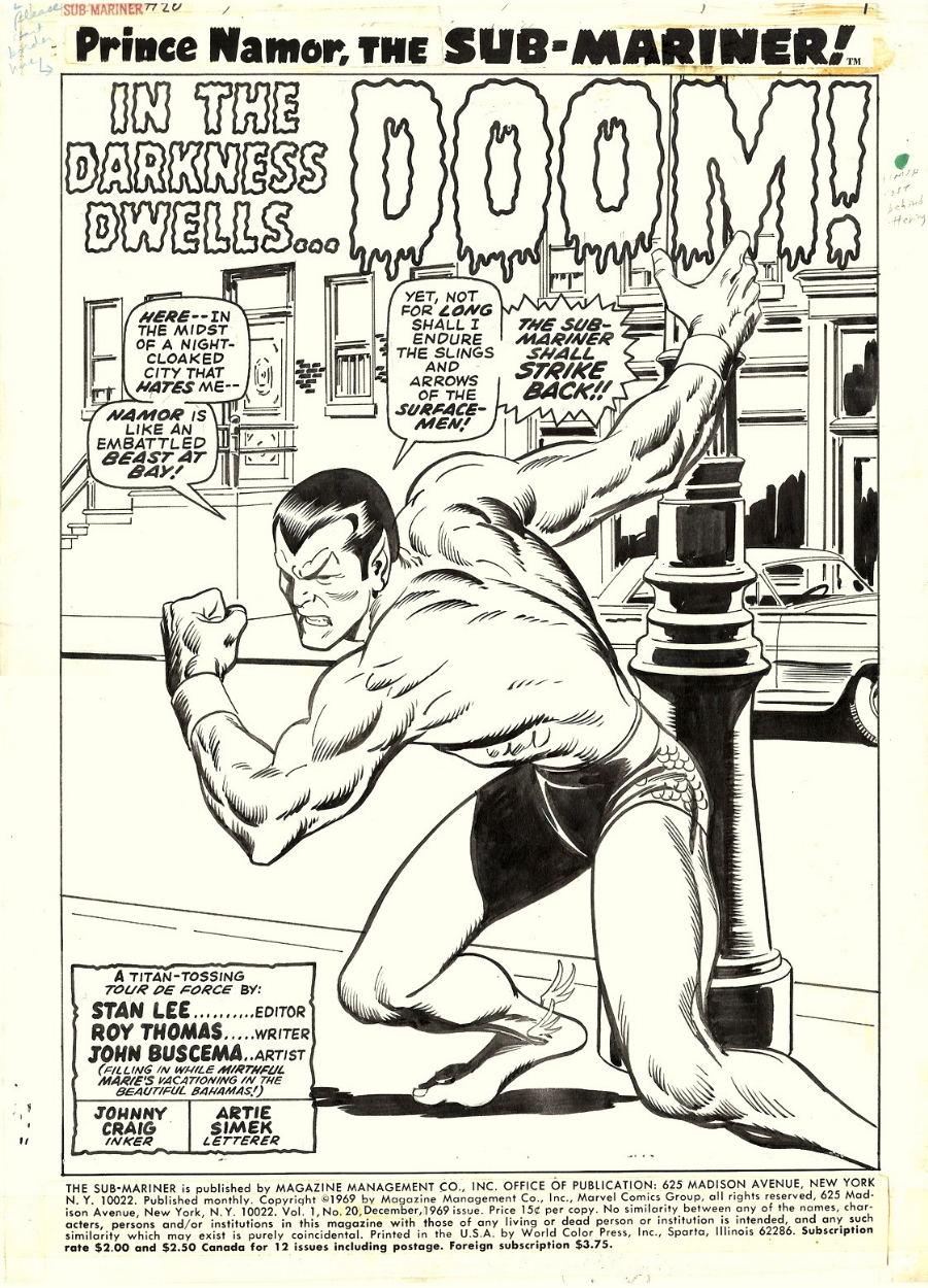 Sub-Mariner issue 20 splash by John Buscema and Johnny Craig. Source.