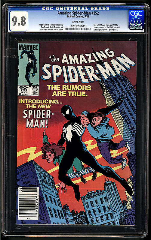 Amazing Spider-Man #252, Marvel Comics (May 1984) Graded by CGC at 9.8 with White pages sold for $168.00 on ComicConnect on November 30th. The Overstreet price guide value for this comic at 9.2 is $65.00.