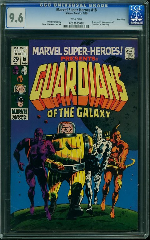 Marvel Super-Heroes #18, Marvel Comics, (January 1969) Graded by CGC at 9.6 with White pages sold for $3,481.00. The Overstreet price guide value for this comic at 9.2 is $115.00.