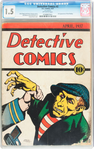 Detective Comics #2, DC Comics, April 1937 Graded by CGC at 1.5 with Off-White pages sold for $7,170.00.