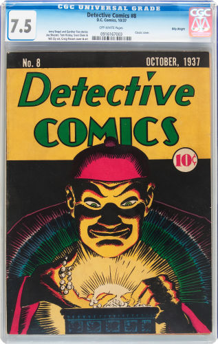 Detective Comics #8, DC Comics, October 1937 Graded by CGC at 7.5 with Off White sold for $14,340.00.