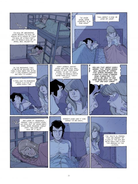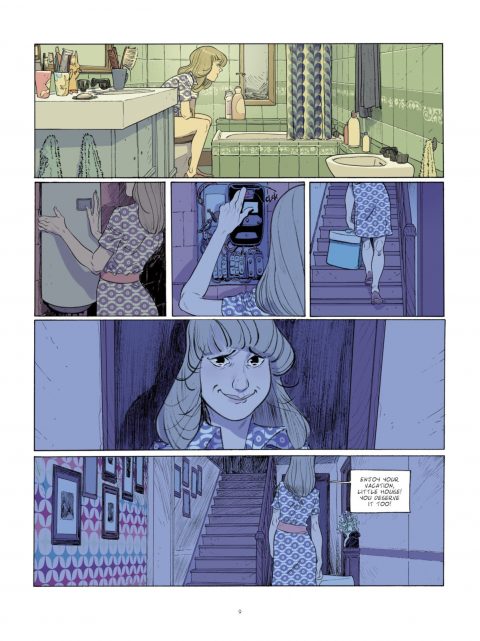 Lafebre is quickly becoming one of my favourite artists working today. Lush environments with superbly expressive characters. Maddie closing the house down says it all, without dialogue. Then the panel of her fighting with Pierre where she’s split, half in that panel and then along in the last panel. Brilliant conveyance of mood.