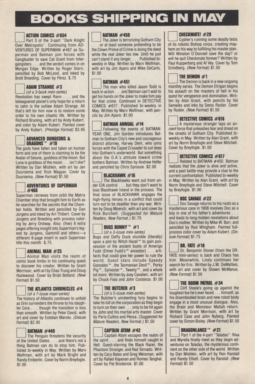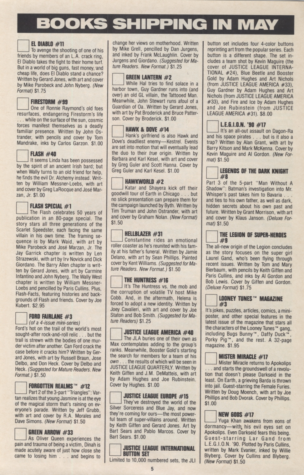 A continued look at pre-internet publisher’s comics solicitations, this time DC Direct Currents 28 April 1990. The Demon, Bugs Bunny, Shade The Changing Man, V For Vendetta, The Prisoner, plus an interview with John Costanza.