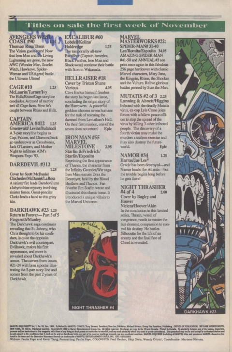 A continued look at pre-internet publisher’s comics solicitations, this time Marvel Requirer Vol 1 Number 33 November 1992. Eight pages dedicated to origin stories of Spider-Man, Captain America and The Fantastic Four. Plus Marvel picking up Fish Police and A1.