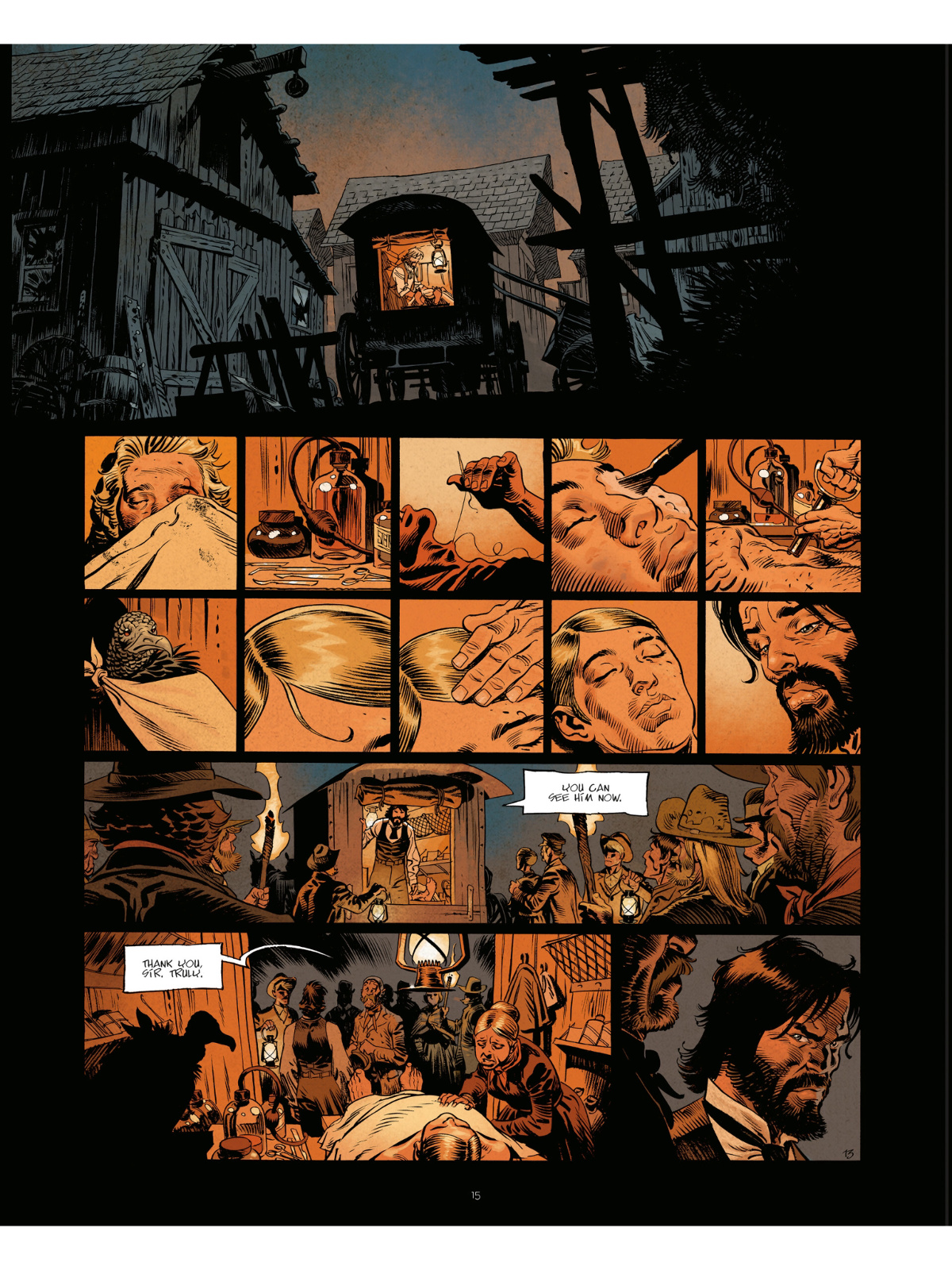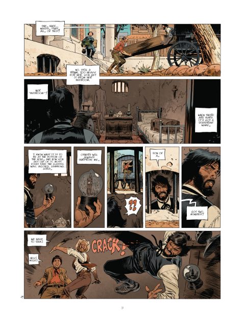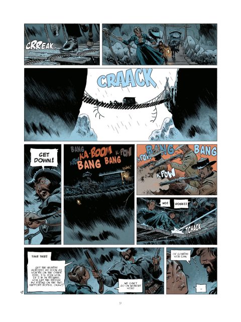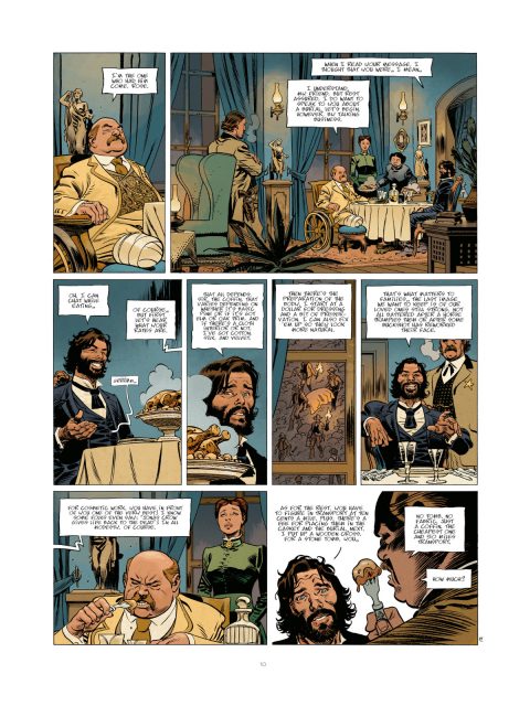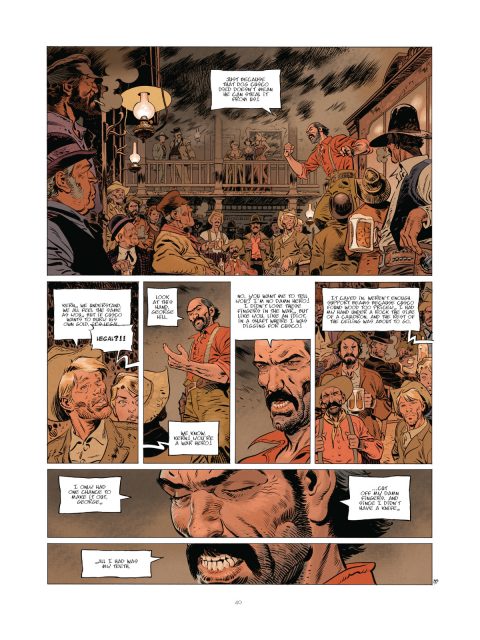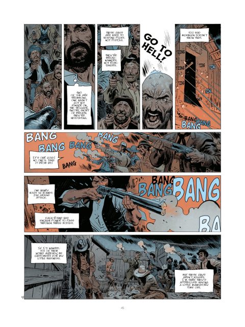 Dorison gives us such a fresh take on the old west through his choice of character, occupation and premise. This first volume presents our characters but slowly peels away the veneer as events progress, revealing layer after layer. Every character is much more than they appear, and it’s getting to their core that reveals the twists of the story. Dorison has created an environment rife with intrigue, humour (yes, even in this dark premise), and non-stop action.
