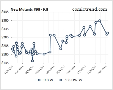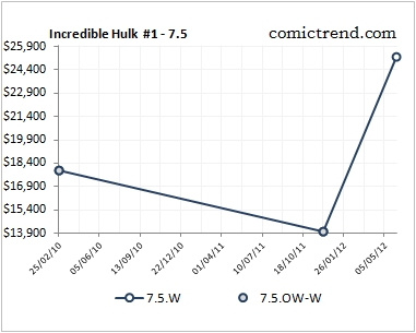 What’s driving the Silver Age and Modern Age indices? A couple New Mutants #98 9.8 auctions hit $385 in late May/early June, up from around $200 at the beginning of the year. Incredible Hulk #1 7.5 hit $25,000 in a ComicLink auction. In December, 2011 a copy sold for just $14,000. Hulk smash!