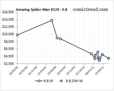 The Bronze Age 9.8 Index would have performed even better if it wasn’t for an Amazing Spider-Man #129 auction that settled at $4,000 near the end of September. In March a copy sold for close to $5,000 after values dropped below $4,000 in January. Will this title follow Incredible Hulk #181 and start to bottom here?