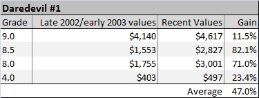 Clearly, Daredevil has been an underachiever. Of course there are many other factors at play besides the movies, but one cannot ignore the fact that Daredevil just hasn’t received as much collector attention—and the poor movie followed by nine years of inactivity play a big part in Hornhead’s underperformance.