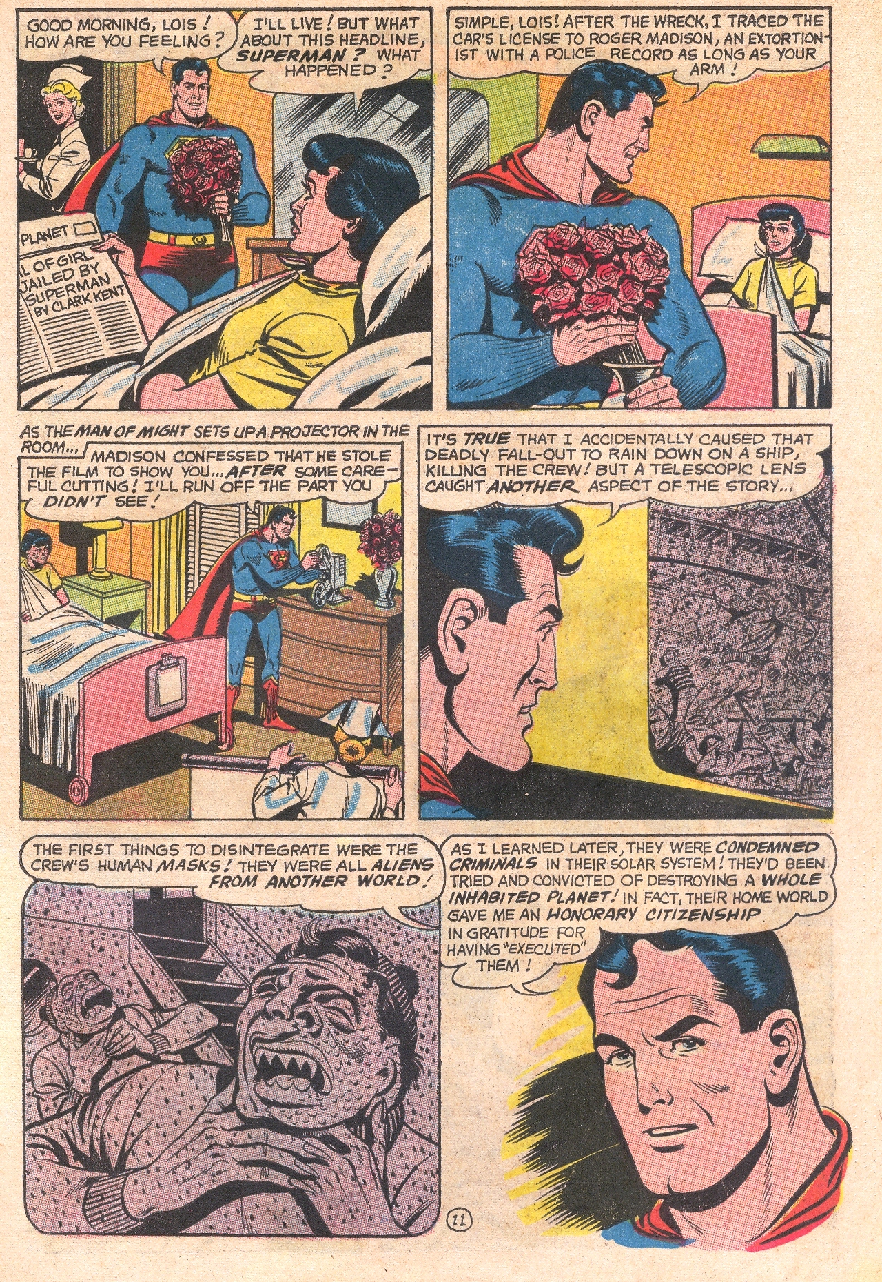 To cap it all off, Superman then berates Lois by saying “Don’t deal with blackmailers!” despite being a person who committed murder. He then says “thanks!” while Lois cries into her bed thinking that instead of saying thanks, he should marry her. Superman with his super-hearing is obviously creeped out by this and slowly backs out of the room making up some kind of flimsy excuse about being on patrol. Our tale ends with Lois entering her office to find that Superman has returned all of her money and souvenirs.