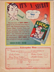 But I think that the cover you have posted here is actually the 1942-1943 Lucky Comics. The Dec. 1943 issue of Lucky had the years listed on the cover. I’m picking nits here aren’t I?