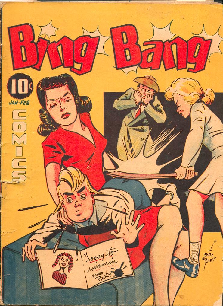 Back to the comics… At the end of 1941, Maple Leaf Publications came out with two new titles, one called Name-It Comics, which contained a contest for readers to supply it with a name (it became Rocket Comics with the second issue) and Bing Bang Comics whose feature character, Pinky, was created by Bert Bushell.