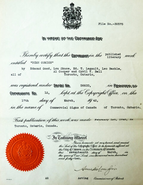 | March 17, 1942 | Feb 1 1942 | Dime Comics 1 | Dime Comics | Commercial Signs of Canada |