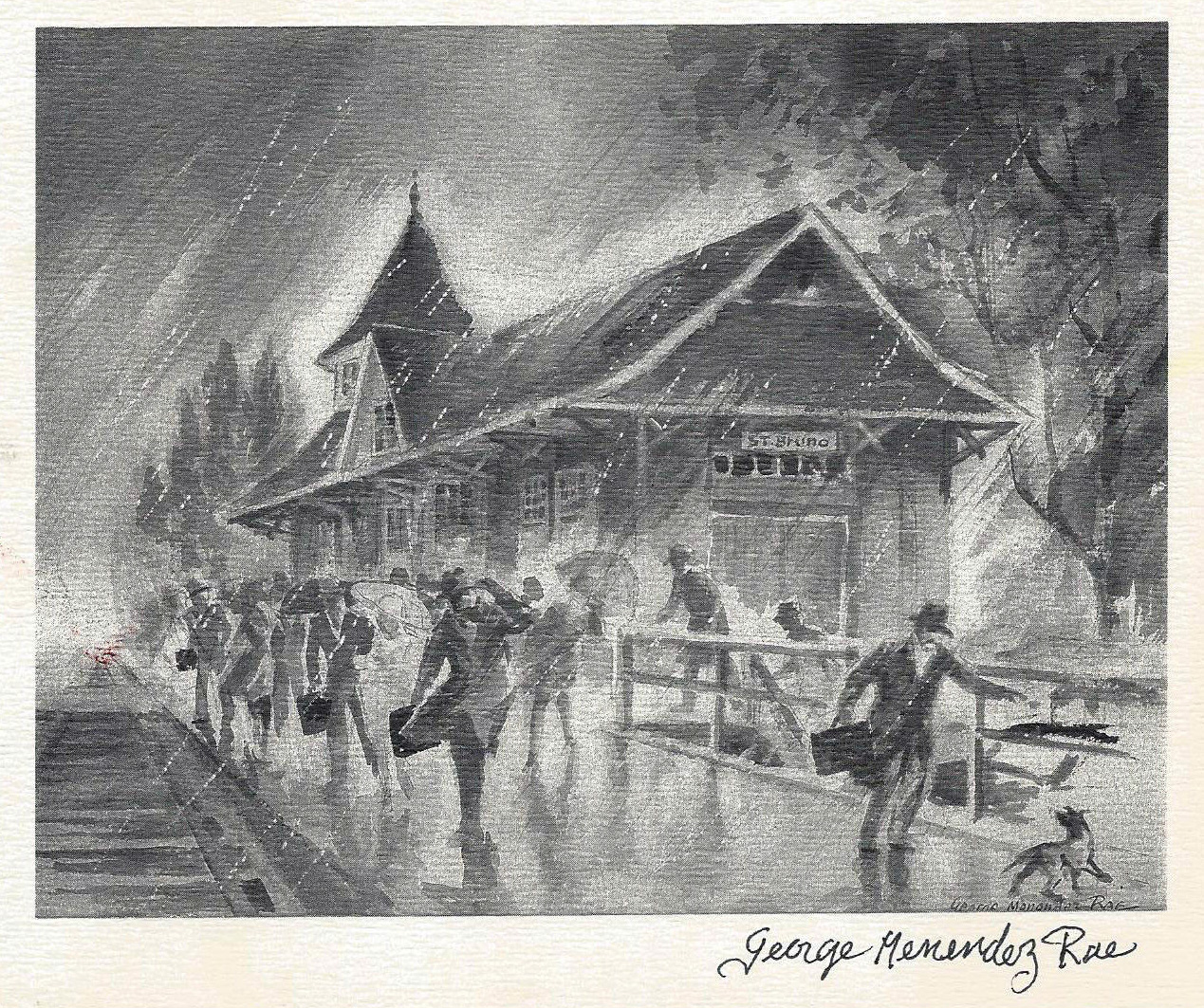 In the late 1950s, Rae moved with his family to St. Bruno, an outlying suburb of Montréal and remained there for the rest of his life. Around the same time, he began working as illustrator and the Artistic director for the Montréal Star and worked there until the paper folded in September of 1979. It was during his time in St. Bruno that he began becoming more seriously interested in fine art. He even served, for a while, as President of the Arts Club of Montreal.