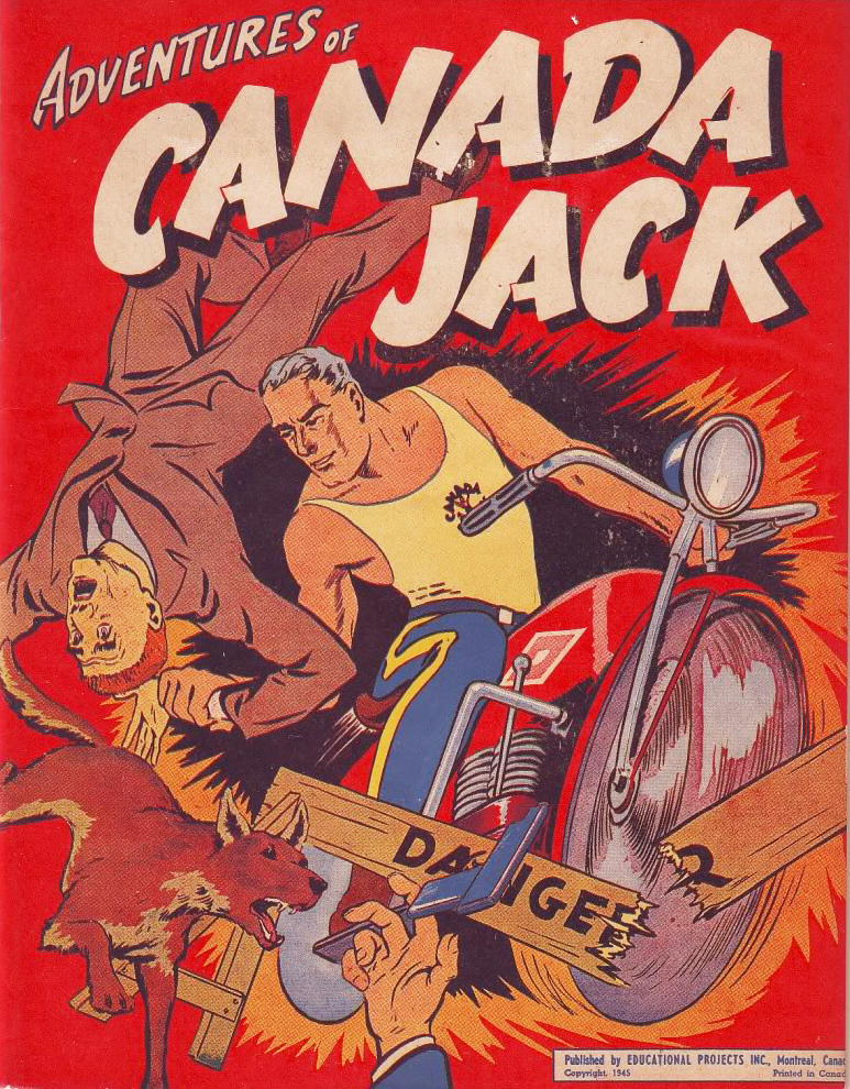 His figures were always solid, smooth and gracefully animated where needed. He often used a lot of pencil/charcoal shading that produced an almost wash-like effect. Of all the Canadian Heroes Comics features, Educational Projects saw fit to release compilation issues of only Rae’s RCMP stories (in 1944) and his Canada Jack series (in 1945).