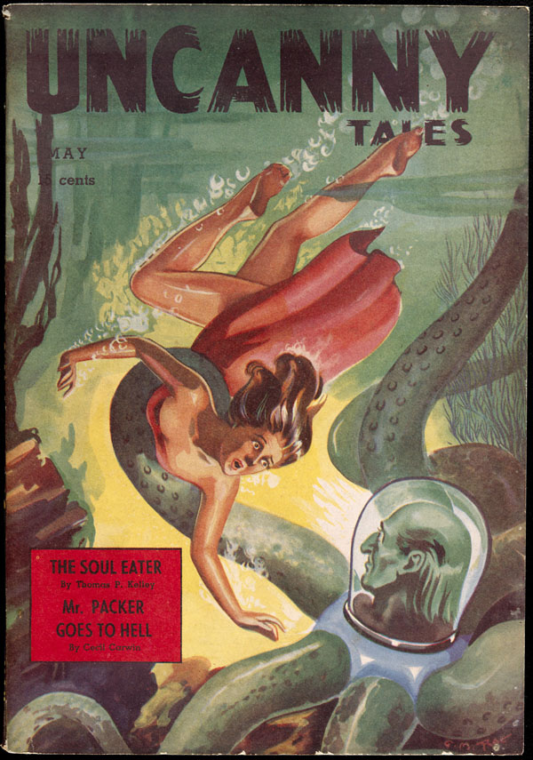 Before getting on board with Educational Projects, Rae did a couple of pulp covers for the May and July 1942 issues of Canada’s Uncanny Tales. Both were typically lurid and fantastic as were most pulp covers of the time and quite different from his future comic book work.