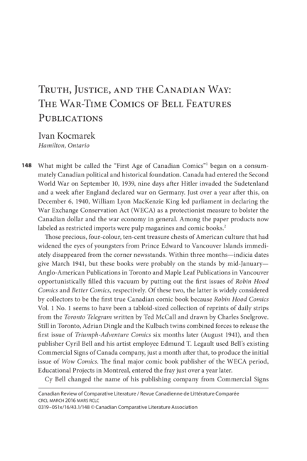 The title of my paper was “Truth, Justice, and the Canadian Way, the War-Time Comics of Bell Features Publications.” I have no idea where a copy can be obtained other than in university and some public libraries. Perhaps I should post the whole thing here as an extended column and see if I get chased in some convoluted way for breaking a copyright control on my own piece?