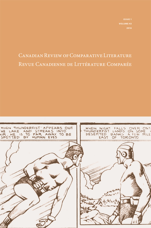 Also a paper I wrote a couple of years ago intended for a volume exploring Canadian identity in comics came out this month in the Canadian Review of Comparative Literature Vol. 43 No. 1. It’s nestled in among ten other papers on subjects connected to that theme and the funny thing is that they selected one of the graphics I sent in as the cover image. You’ll recognize the reprobate depicted here: