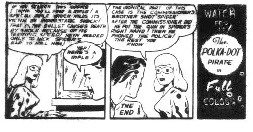 Both did appear in Slam-Bang Comics No. 7. A further new Jeff Waring story in colour also appeared about a year after that in Super Duper Comics No. 3. The last appearance of the Polka-Dot Pirate in Commando Comics No. 22 also promised a full-colour new story and we also got that in Slam-Bang 7.