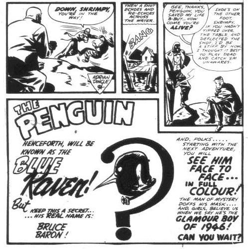 The final issue of Wow comics promised the reappearance of both Jeff Waring and the Penguin. The former in the next issue of the title and the latter somewhere less definite andmorphed into the Blue Raven.