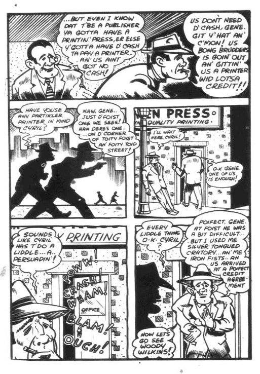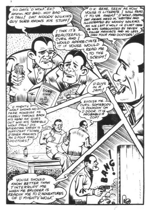 One story arc I lament was never finished was Tedd Steele’s “Woody and the Wolf” story also in that final issue of Wow Comics. Here Tedd parodies Cy Bell and brother Gene who stood at the helm of Bell Features. He had already parodied Cy and fellow artists Ross Saakel and Leo Bachle in Joke Comics No. 16 and in a short series of stories about Cy Bell’s hockey team “The Panthers” in Active Comics Nos. 19-21.