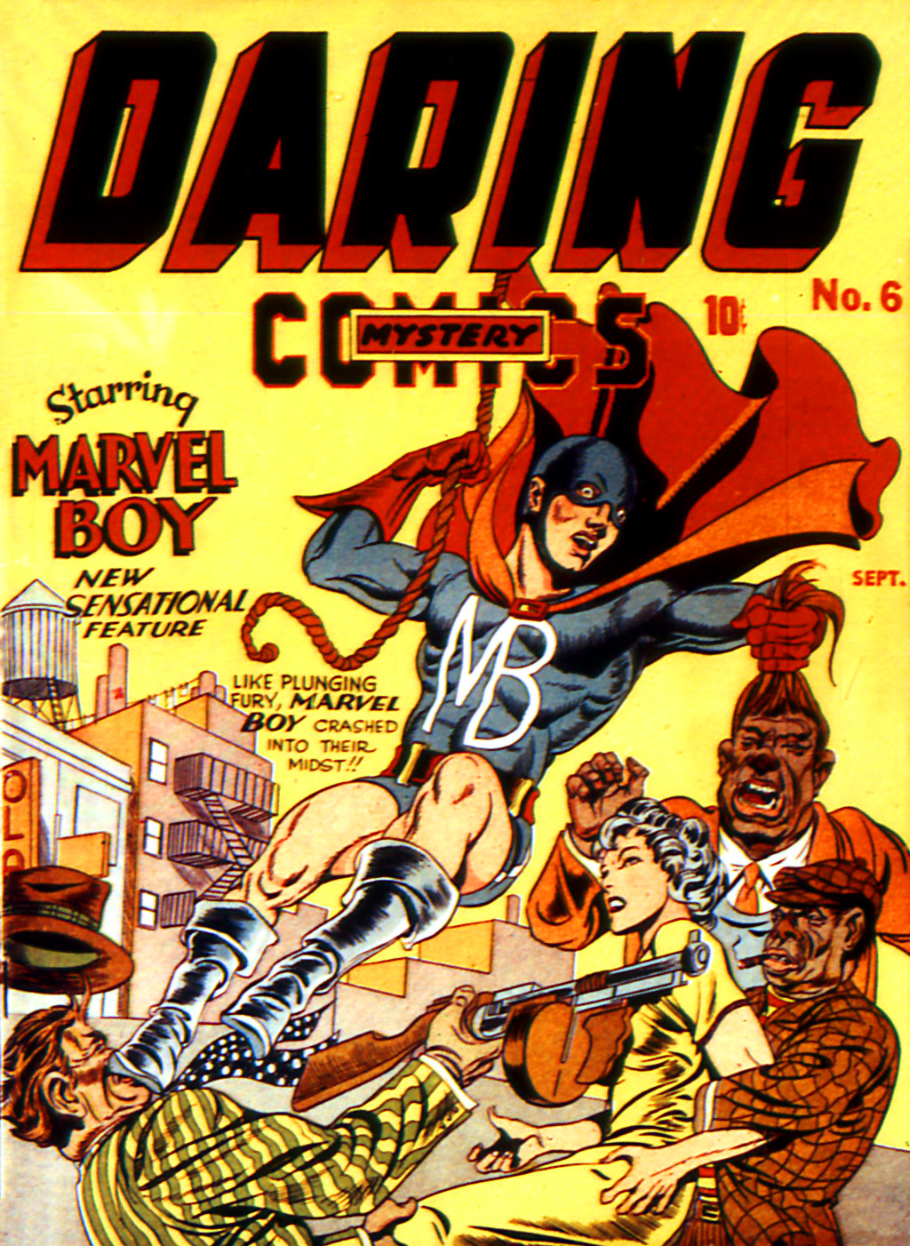 This may be considered a rip-off of some sort but it’s not yet a swipe, but here is a definite swipe! Compare the bottom half of p. 8 of the Marvel Boy story in Daring Mystery Comics No. 6 with the third page of the Captain Wonder story from Triumph Comics No. 8: