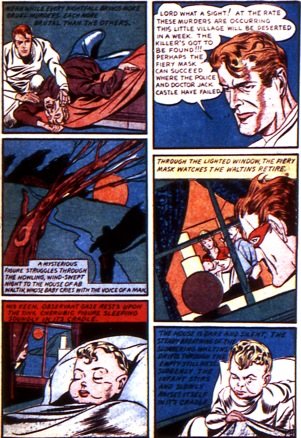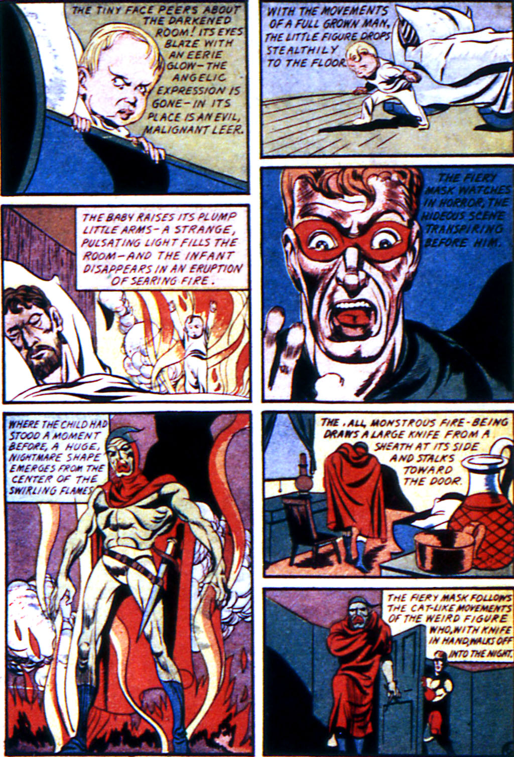 A little bit of rearranging of the graphics but the text follows closely. Here are some other panels from the Fiery Mask story in which the graphics correspond more closely with the Captain Wonder story from Triumph 9: