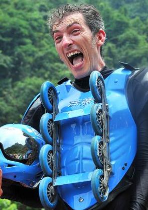 I think I’ve found an actual, suitable candidate to be a real-life superhero in Jean-Yves Blondeau, AKA: The Daredevil Speedster. He certainly looks the part in his homemade, bespoke roller-suit and seems truly fearless in his attempt to break the world record for fastest unassisted descent down Tianmen Mountain, Zhangjiajie in south China’s Hunan province.