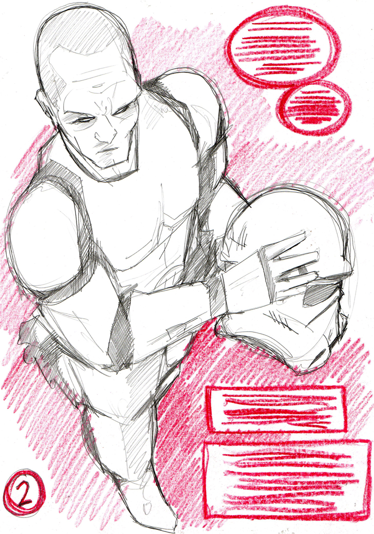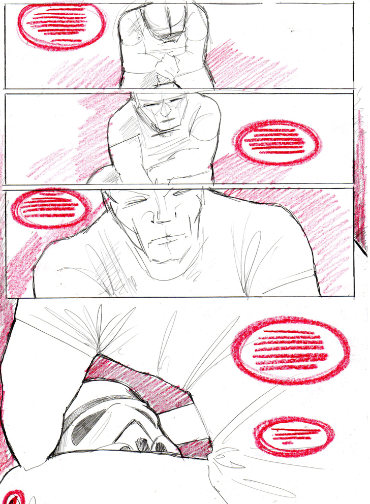 Please find a couple of storyboarded pages below which, I’ll obviously develop, refine and produce ‘finished pencils’ for – before submitting to Dark Horse directly (for them to simply laugh at and ignore probably).