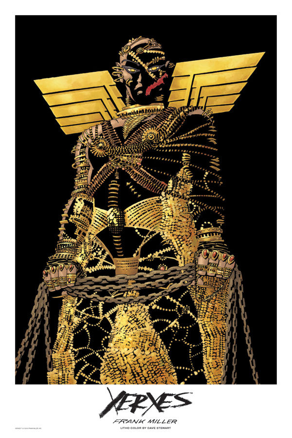 Frank Miller’s Xerxes is slowly becoming a reality as we see a lithograph in October. No word on when the actual book will see the light of day but the lithograph does make a few interesting points. One, it looks like Frank is dialing back his style to how it was for 300 which is a good thing. Over the years, Miller’s style has gotten a little too cartoony for my tastes, this might be a step back in the right direction. The second thing to note is that colorist Dave Stewart did the lithograph. Does this mean Dave is taking over the reigns of Lynn Varley’s paints?