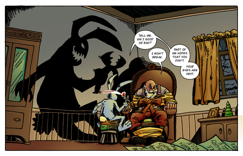 Yeah, in case it seems like a sweet kid’s comic, I should remind you that the title is Holiday WARS, and the Bunny and his allies are not nice folk.