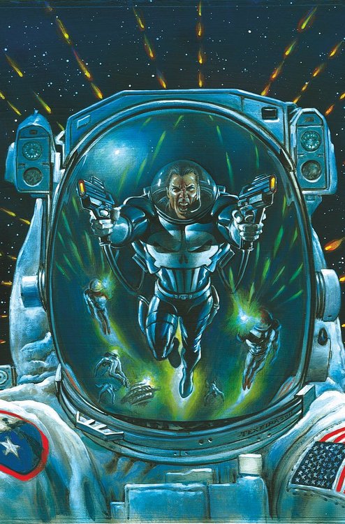 Therefore, his ideas don’t really work well in the normal Marvel universe. But neither does the Punisher. So when he is given his own sandbox to play in to create, distort, and exaggerate he develops some amazing ideas such as why is there no space mafia in the Marvel U?