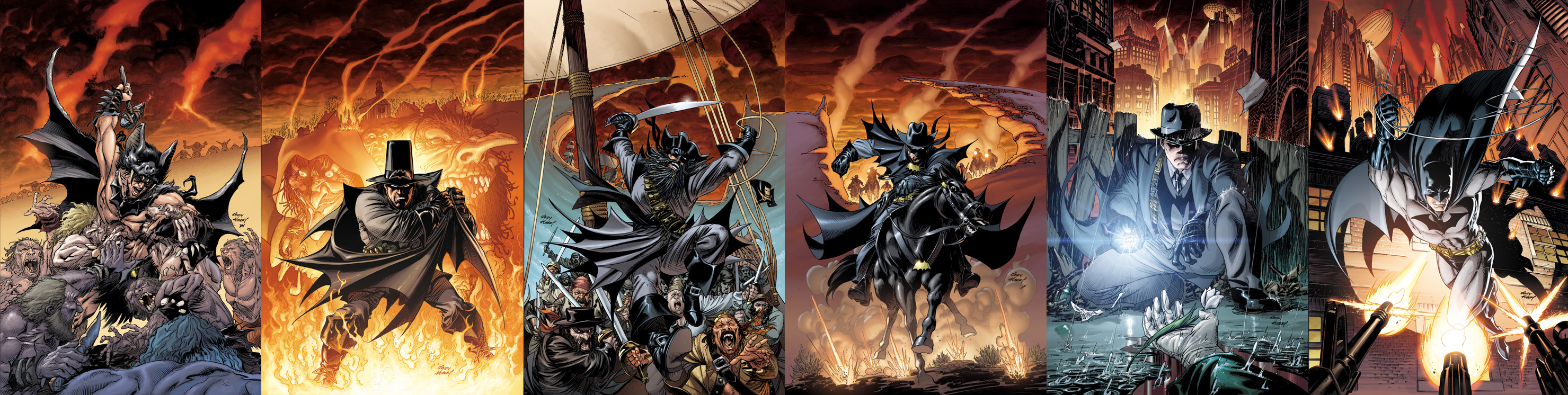 Today over at the DCU Blog, the good folks have uploaded all six covers, coloured and connected, showing off the masterful job that Kubert did by stylistically and subtly connecting each cover with the batsymbol.