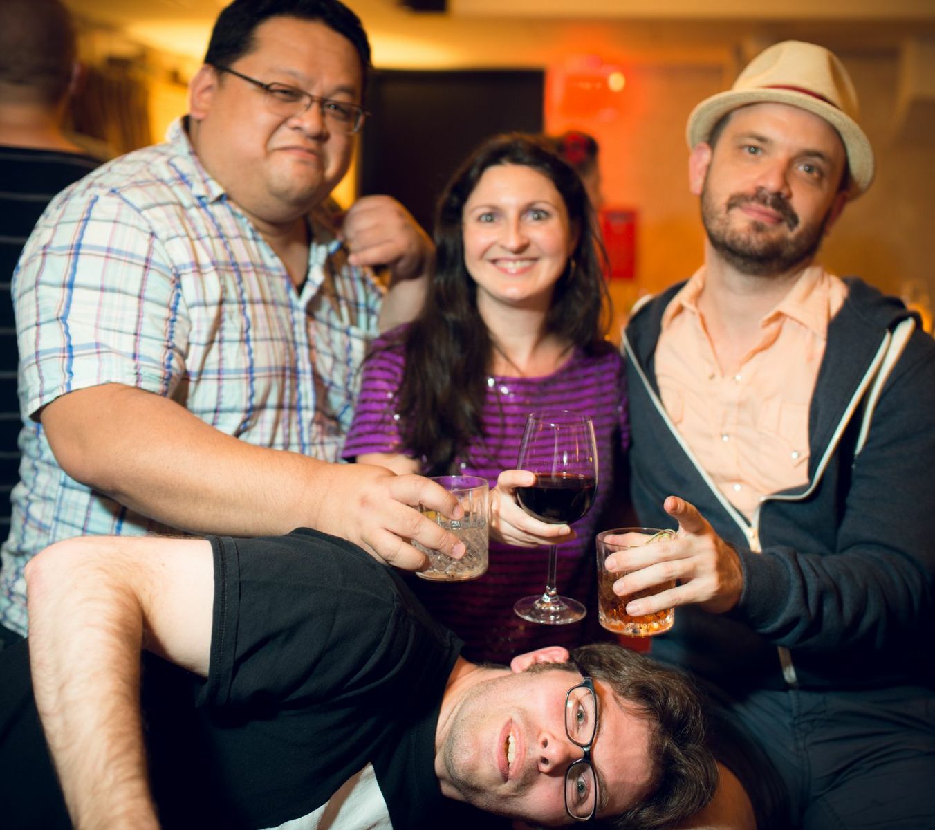 Ryan Stegman out duck-faces Sina Grace, Erin Stegman, Ellie Pyle, and Anthony Falcone.